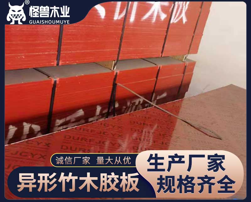 異形竹木膠板:竹膠板用竹子做的多層膠合板,木膠板就是木材及木鋸末做的膠合板。竹膠板比木膠合板耐用,周轉(zhuǎn)次數(shù)較多,剛度好,價(jià)格較高。但是木膠板在梁底等部位使用效果要好于竹膠板。